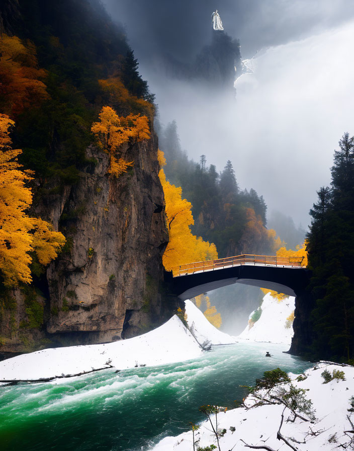 Дорога достаточно круто забиралась вверх, и вскоре по бокам её появился снег. Ага, вот перевал, а что это у нас дальше? Какой-то мост. Интересно, а что это проглядывает за ним в облаках?
